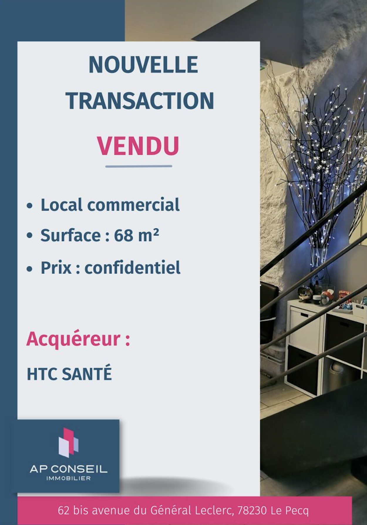 Nous avons vendu un local commercial de 68 m2 situé dans la ville du Pecq.